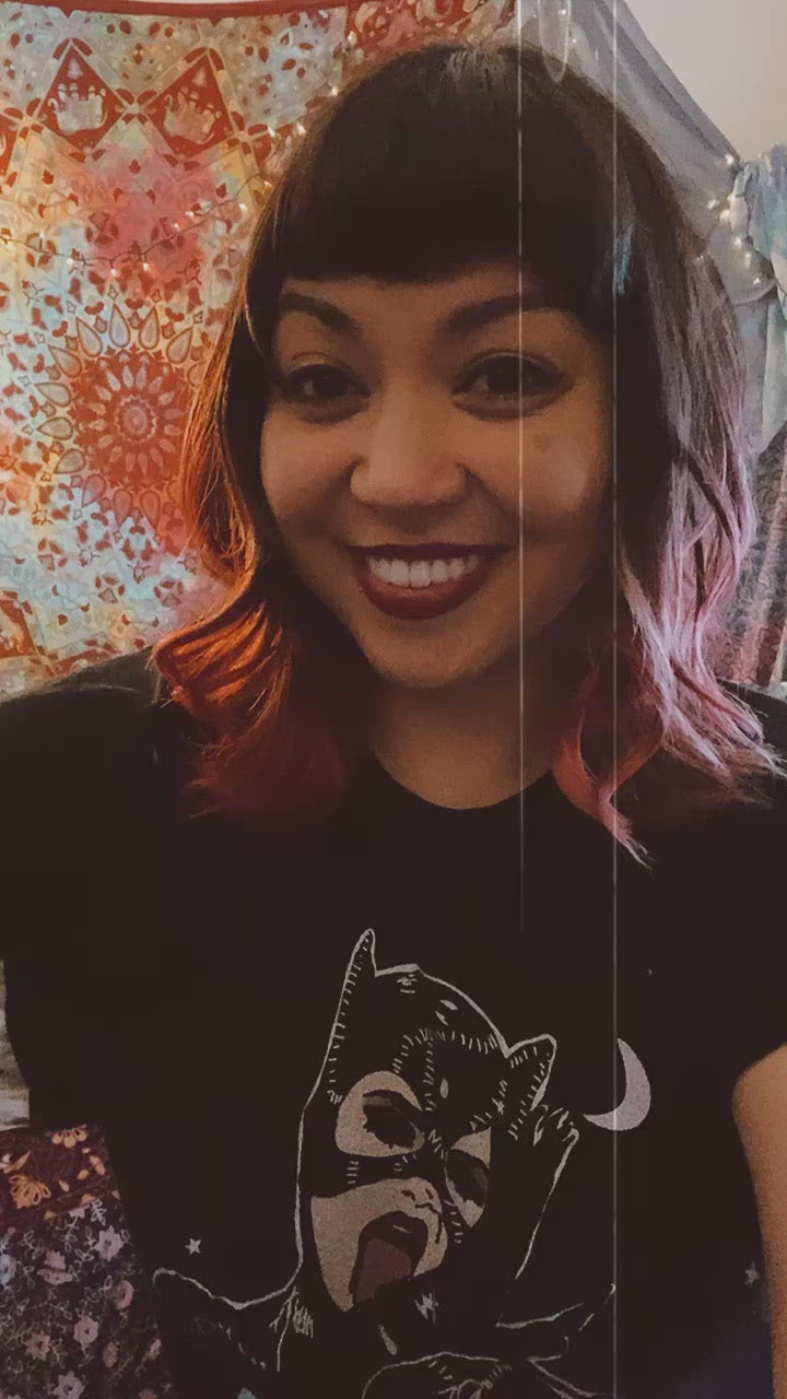 My black unisex tees are super soft with simple lines (these have a roomy fit and are not tapered like women's shirts typically are). The sleeves and torso are long enough for stitchless alterations (cuffing sleeves, knotting the bottom, cutting/ cropping etc). The tshirt graphic pairs well with loose frayed denim for a 90s alt look. If you size up, the tee is also long enough to wear over yoga pants/bike shorts while remaining somewhat fitted. In the photo, I am wearing a M.